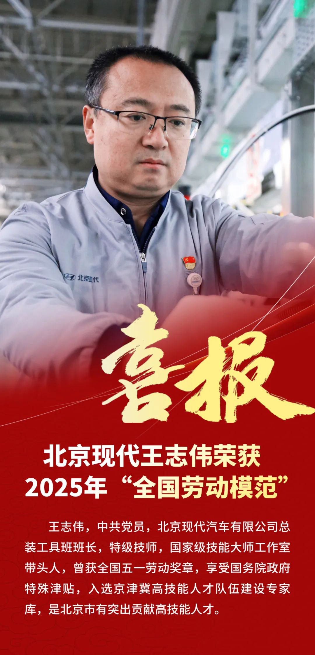 热烈祝贺!北京现代王志伟被党中央国务院授予"全国劳动模范"荣誉称号